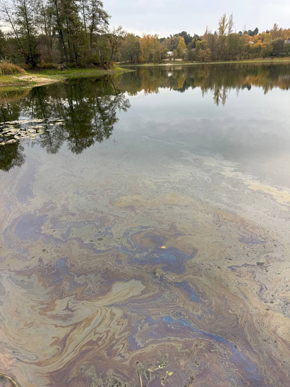 Озеро в деревне Верхняя Вырка покрылось бензиновой пленкой. Запах бензина стоит на всем побережье. Как сообщила нам жительница деревни Верхняя Вырка Анастасия Костяева, это произошло вскоре после того, как 4 октября на Южном обходе Калуги, в районе деревни Животинки, съехал в кювет и перевернулся бензовоз.