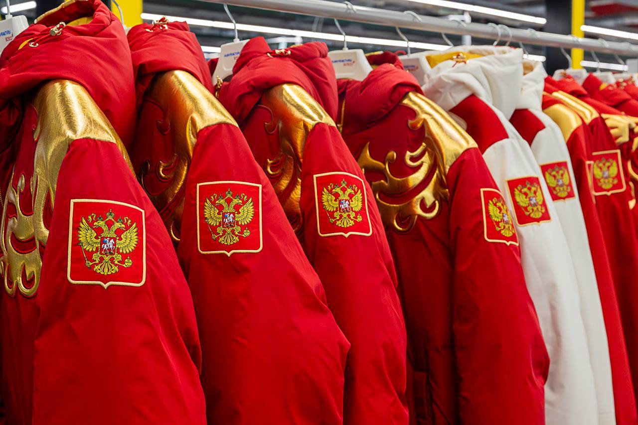 «Председатель координационного совета группы компаний «Боско» Михаил Куснирович показал производство, где вовсю идет выпуск новой формы. Ее в прошлом году глава минспорта представил президенту России. Владимир Путин одобрил: красивая, отечественные материалы и производство. Название новой коллекции «Золотое наследие»: узнаваемые образы, символичная цветовая гамма»,