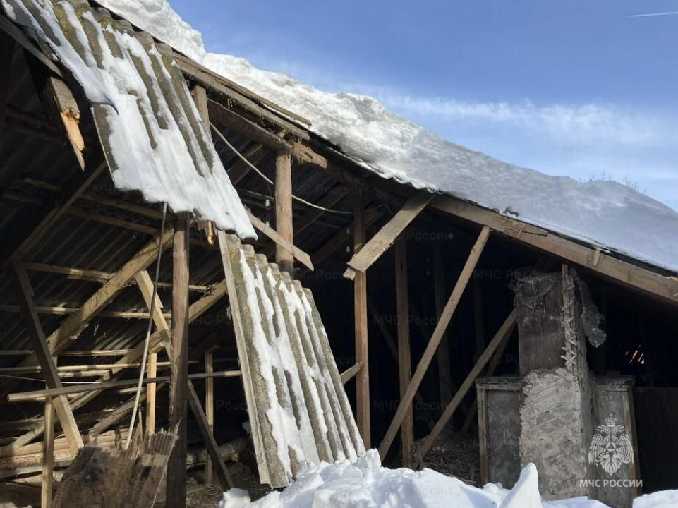 Кровля жилого дома на улице Шестакова в поселке Воротынск пострадала более серьезно. Снег обрушил ее на площади 250 квадратных метров. Пострадавших ни в том, ни в другом случае нет.