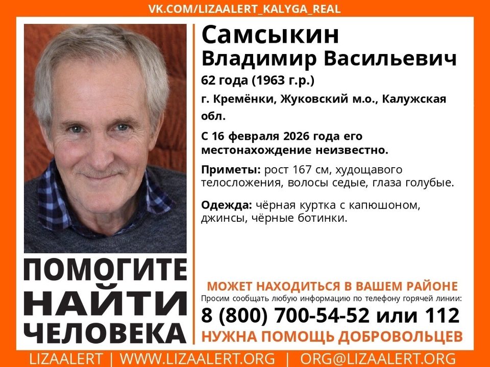 Больше недели в Кремёнках Жуковского округа не могут найти 62-летнего Владимира Самсыкина. Он пропал еще 16 февраля. О поисках мужчины объявили в "Лиза Алерт".