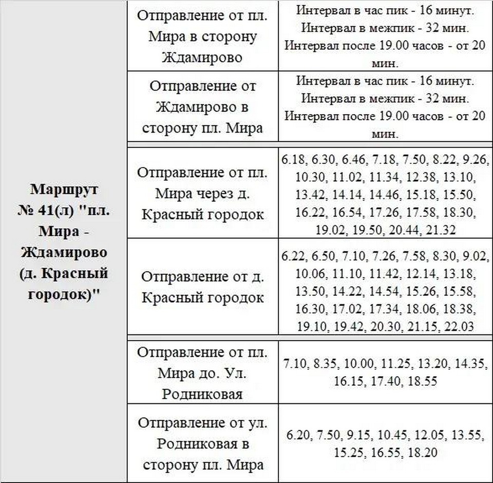 Расписание 41-го маршрута изменится