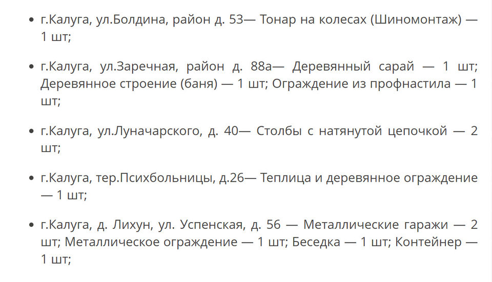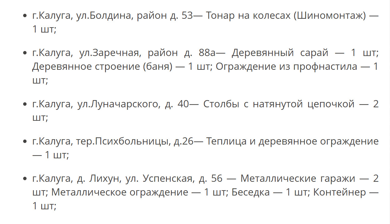 Городские власти ведут борьбу с незаконными и брошенными постройками на улицах Калуги. В пятницу, 24 апреля, они опубликовали новый список объектов, которые могут подвергнуться сносу, если их владельцы не предоставят документы на землю.