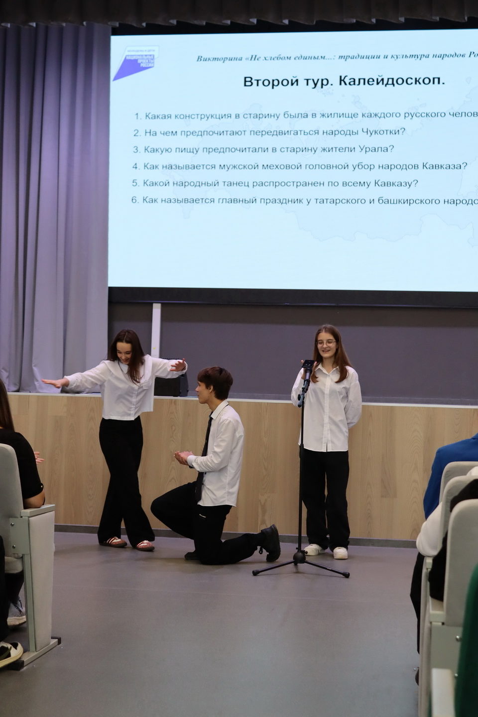 17 октября ученики средней школы №29 приняли участие в викторине «Не хлебом единым...: традиции и культура народов России», посвященной культуре народов нашей страны. Школьники узнали о пословицах и поговорках народов Кавказа, татарских и башкирских национальных праздниках, древних украшениях из лосиной шкуры, любимых блюдах народов севера.