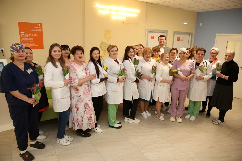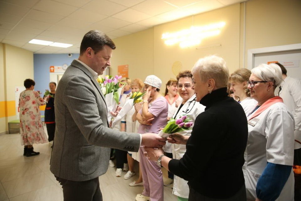 Накануне Международного женского дня 8 Марта председатель гордумы Калуги Юрий Моисеев и депутат Эльвира Капитонова поздравили сотрудников детской поликлиники на Правобережье. От депутатов врачи получили в подарок сладости, фрукты и цветы.